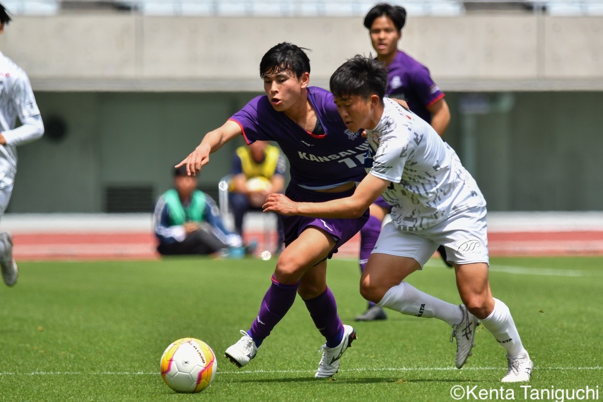 ヤンマースタジアム長居で行われた第4節・関西大vs大阪経済大の一戦。28分に関西大MF宮川大輝(2年/ガンバ大阪ユース)が先制点を挙げると、70分にハンドのジャッジで大経大に与えられたPKを関西大GK山田和季(4年/近江高)がストップ。大経大の攻撃を防ぎ切った関西大が勝点3を獲得し4位に浮上、大経大は6位となった。