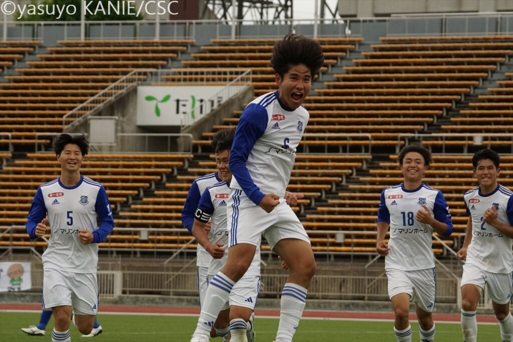 阪南大vs関西学院大も激しいゲームとなった。3分に阪南大はFW角田颯磨(3年/高知中)のシュートをFW中田有祐(3年/ベガルタ仙台ユース/仙台内定)が押し込み先制かと思われたが、これはオフサイド。阪南大の連続CKをしのいだ関学大は、16分スローインを受けたFW山本吟侍(2年/高川学園高)がボールをおさめてパスを出すと、MF長滝谷洸斗(3年/近江高)が勢いのあるミドルシュートを放つと、GKがこぼしたところをMF先田颯成(2年/サガン鳥栖U-18)が流し込み、先取点とする。阪南大も21分にMF松本楓悟(4年/阪南大学高)のパスからFW角田がビッグチャンスを迎えるが、関学大DFのカバーリングに防がれる。1点を追う阪南大は後半からFW金本毅騎(3年/セレッソ大阪U-18/C大阪内定)を投入し、攻撃の圧力を高めてくる。すると60分、MF秋末翔也(1年/宮崎日本大学高)の直接FKをDF金子光汰(4年/船橋市立船橋高)が頭で落としたボールがDFの裏に出たところを、FW角田が巧みに決めて阪南大が同点に追いつく。攻め込まれる時間が増える関学大だが、集中した守備から素早く攻撃へと転じると、74分に相手ペナルティエリアの外で直接FKを獲得。これをMF先田が見事なコントロールで左上隅に叩き込み、勝ち越し点とする。その後の阪南大の攻撃をしのぎきり、関学大が勝ち点3を獲得して2位へと浮上した。