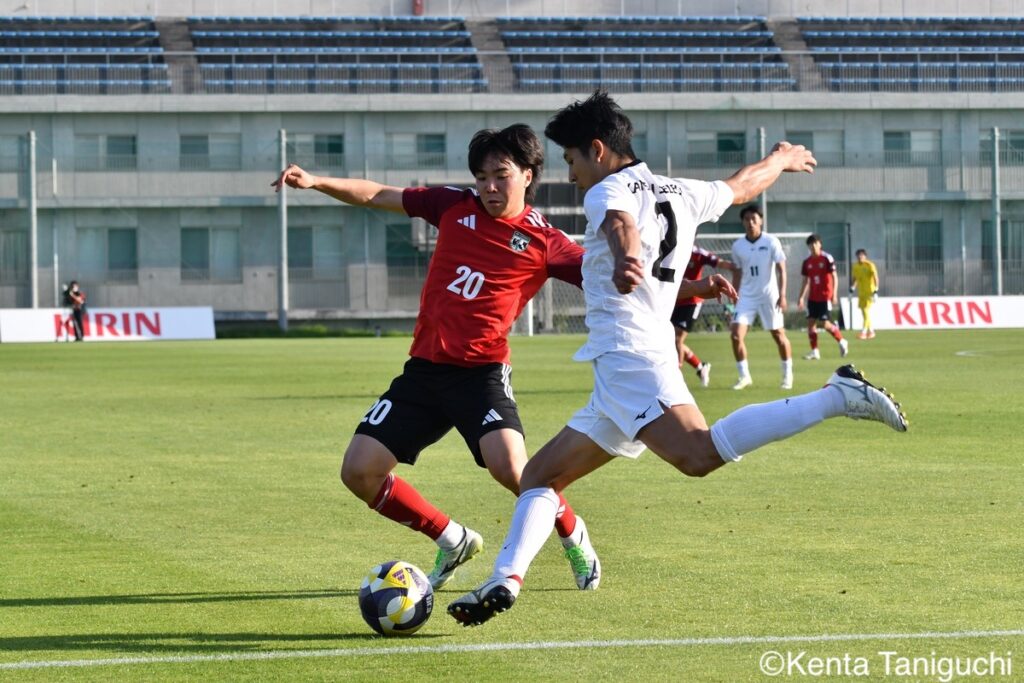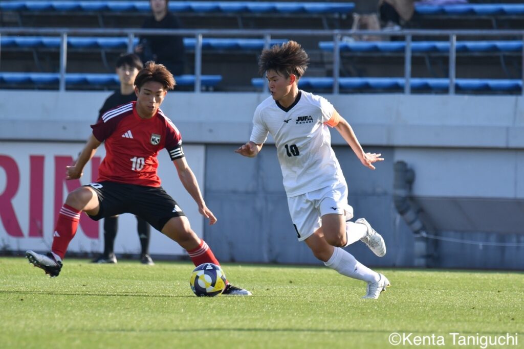 後半開始早々、関西選抜が試合を動かした。48分に右サイドでFKを獲得すると、MF鹿取勇斗(同志社大4年/桐光学園高)のキックにFW中田が長身を活かして頭で合わせ、同点ゴールを押し込んだ。さらに66分、中盤でボールを受けたFW中田は、相手のプレスを受けながらも右サイドのMF山本(青)にスルーパスを供給しチャンスを作ると、FW水永が相手のバックパスの乱れを見逃さずにボールを奪い、ゴール前のFW中田に供給。中田が冷静にシュートを流し込み、逆転ゴールを決めた。試合後、FW中田は「全員で強度を出して、前からボールを奪って最後に自分が仕上げただけ。ちょっとミスキックぽくなったけど、自分は仕上げただけなので。そういった意味では、チームで意識していた部分をしっかり出しながら繋げれたので良いゴールだったと思う」と逆転弾を振り返った。