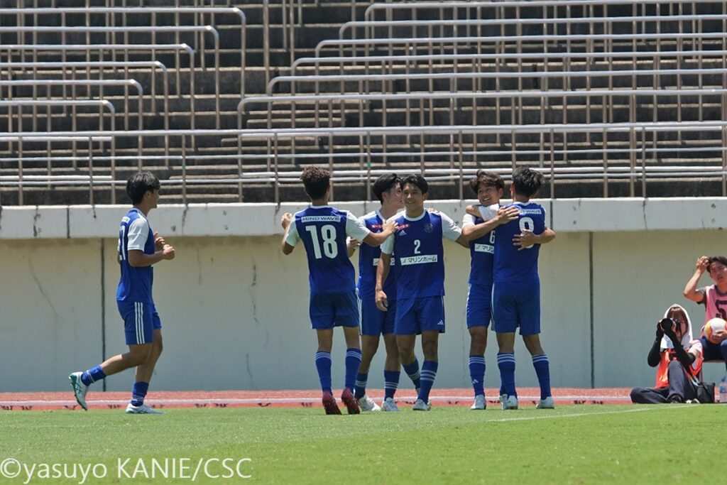 18分にDF西谷京祐(4年/関西学院高等部)が縦に入れた鋭いパスを足元でピタリと受けたFW山本吟侍(2年/高川学園高)が冷静にゴールへ沈めて先制。39分には相手のクリアボールを拾ったMF先田颯成(2年/サガン鳥栖U-18)が決めて追加点とする。だが、全国大会初出場を狙う京都橘大も後半、攻撃の圧力を高めてくる。GK宮本流維(4年/名古屋グランパスU-18)を中心に身体を張ってゴールを死守する関学大だが、83分にDF沖秀大(4年/東海大学付属大阪仰星高)にゴール前で頭で押し込まれて追い上げられる。それでも京都橘大の攻撃を全員で跳ね返してリードを守りきり、泥臭く総理大臣杯の切符をつかみ取った。