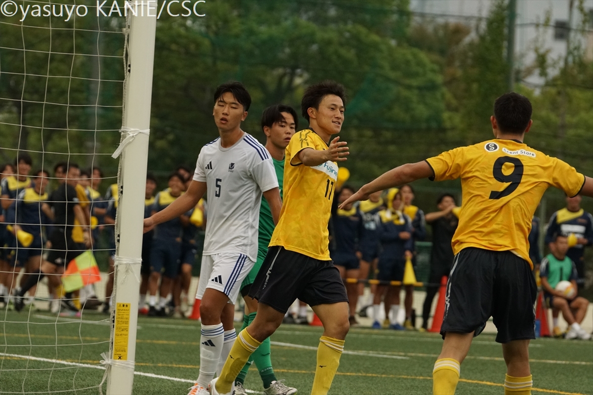 得点:’24 京産大/高川諒希、’35 京産大/妹尾颯斗、’37 桃山大/原田幹太(厚地陽賢、辻颯人)、’45+2 桃山大/藤枝康佑(辻颯人)、’76 桃山大/李隆志、’87 桃山大/李隆志、’88 京産大/長谷川裟恭(福永裕也)