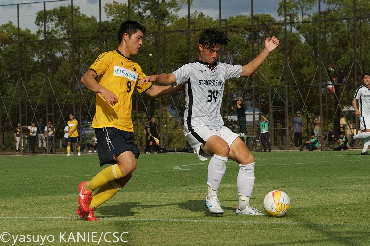 2025/10/11 関西学生リーグ後期第5節 甲南大vs桃山学院大 フォトギャラリー/上位進出のために互いに負けられない一戦は、桃山大が藤枝のゴールで先制するが、甲南大は大西ヘッド弾で追いつき、痛み分けのドロー